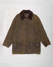 Stay warm in style with this awesome Barbour jacket. Made from 100% waxed cotton with silkoil finish, it has an oversized fit so offers maximum comfort, warmth and durability. Featuring a concealed zip-up front with branded button down flap, side split vents, a brown corduroy collar and two branded buttoned down hand pockets, the left of which features brown Barbour embroidered logo branding.