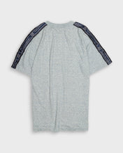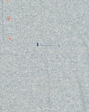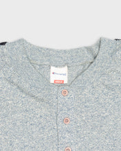 This vintage Champion t-shirt comes in a heather blue/white/grey fabric and features a buttoned crew neck, a printed logo on the front and their signature logo typed tapes stitched along the sleeves.
