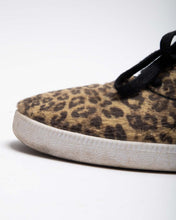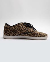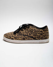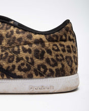 Get active with these skater style trainers from Reebok. They come in an eye-catching suede leopard print with branded tongue, black trim and laces in black plastic eyelets with solid white sole.
