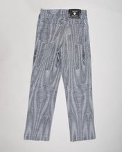 Add some style with these gorgeous '90s Versace jeans. Made from 100% stretch cotton and in a beautiful snug fit they are both stylish and comfortable. In grey with black abstract horizontal stripes with randomly positioned tiny silver studs. They feature two front pockets, a watch pocket, Versace branded rivets and two rear pockets with Versace branded patch on the right.