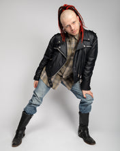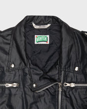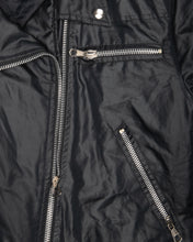 This is truly one of a kind and perfect for metal heads and goths that love a nature walk! This 90's cropped jacket has the same shape and features as a classic biker jacket, only made fully out of waterproof material.