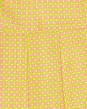 This beautiful boat neck dress with short sleeves comes in a light fabric with salmon pink and lime green dots printed all over.