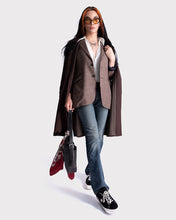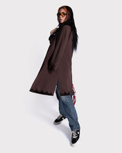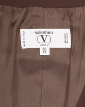 This Valentino collarless coat comes in a chocolate brown shade and features front buttons, long sleeves and velvet details on the hems.