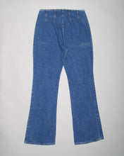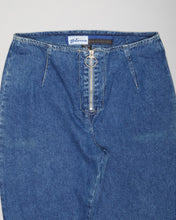 Get a 70's look with a 90's twist with these vintage Express Bleus jeans. Made from 100% cotton they come in classic dark blue. The fit is a straight leg with a flared bottom, high rise with a unique zip fly and a large 'O' ring pull.