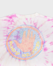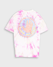 This vintage t-shirt comes in a circular white and pink tie-dye pattern and features a hand print with BODY GLOVE.