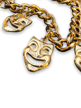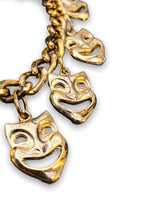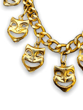 This 18 kt gold plated charm bracelet features joker face pendants. Has lobster clasp closure.