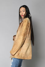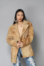 Vintage '90s suede leather jacket. Comes with natural leather variation for a gorgeous brown beige variegated colour, has a notched collar and front two button closure. Comes with two front deep hand pockets and long sleeves and one inside pocket. Has patchwork detailing on the front and back for a dynamic look.
