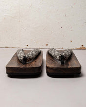 These authentic Japanese sandals come with a real wooden platform and a rubber sole underneath. Features gorgeous floral geometric pattern on the fabric strap.